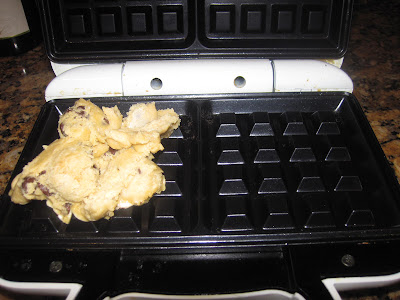 Now.... I only ate about half my burger but then later I needed a sweet fix so I thought back to something I saw and grabbed a little glob of cookie dough that has been in the fridge forever and the waffle maker.